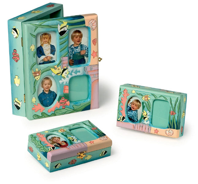 3-er Set. Handbemalte und dekorative Holzkästen zur Aufbewahrung von unvergesslichen Momenten. Besonders ansprechend - im Deckel können 4 bzw. 2 Bilder in den Rahmen eingelegt werden. Ca. 23 x 18 cm