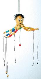 Die Bändchen werden in der Mitte der Feder befestigt. Durch das Auf- und Abschwingen tanzen die Arme im Takt. Ca. 17 cm